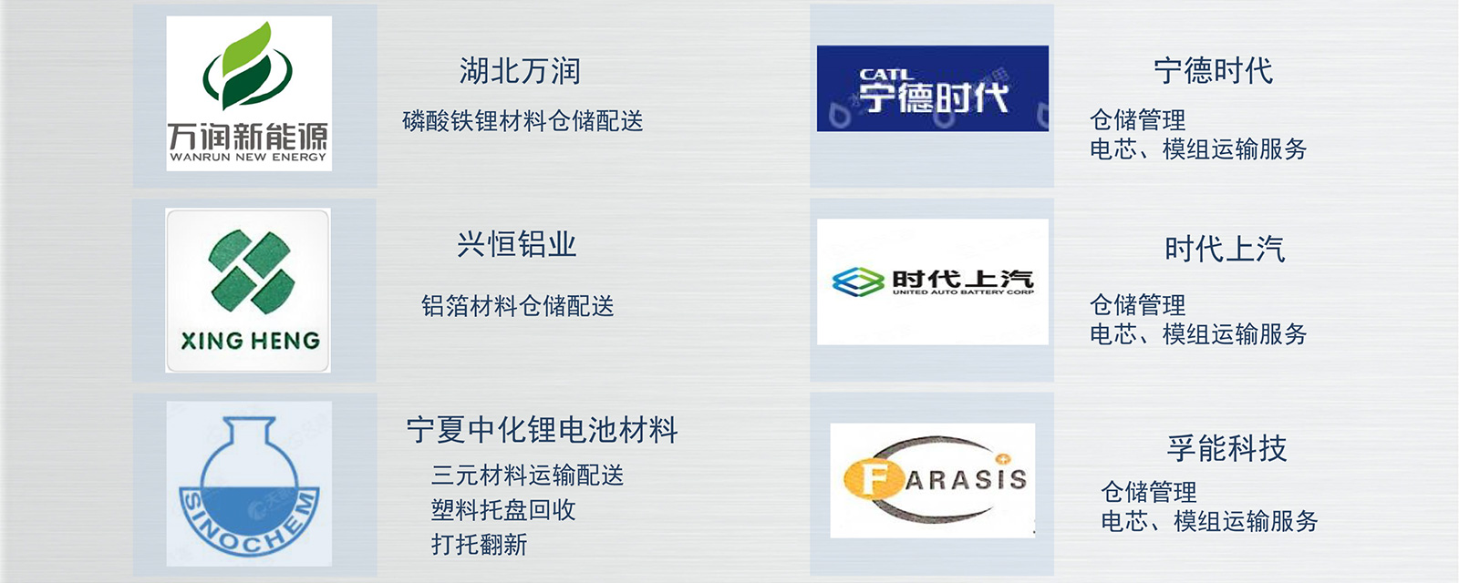 1、相关客户:宁德时代、江苏时代、时代上汽、时代一汽、上汽上海捷新工厂、上汽南京捷新工厂、衢州极电、江苏正力新能、五矿新能(湖南)、金驰能源材料、湖南裕能、德方纳米、湖北万润、常州锂源、广东邦普、宜宾锂宝、成都巴莫、华友钴业等2、承运产品:磷酸铁锂正极材料、三元正级材料、钴酸锂,石墨材料、电芯、模组等3…